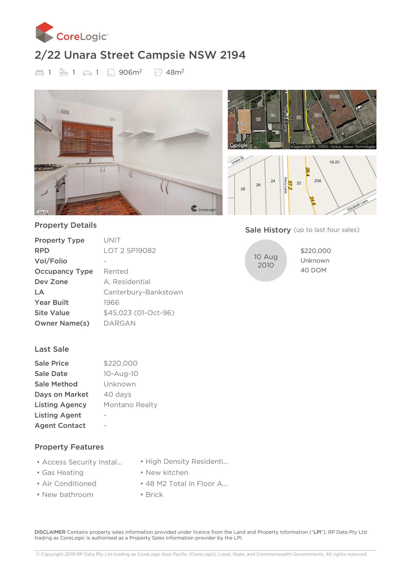 An established unit built in 1966 on 2/22 Unara St Campsie NSW purchased in 2010 for $220,000.