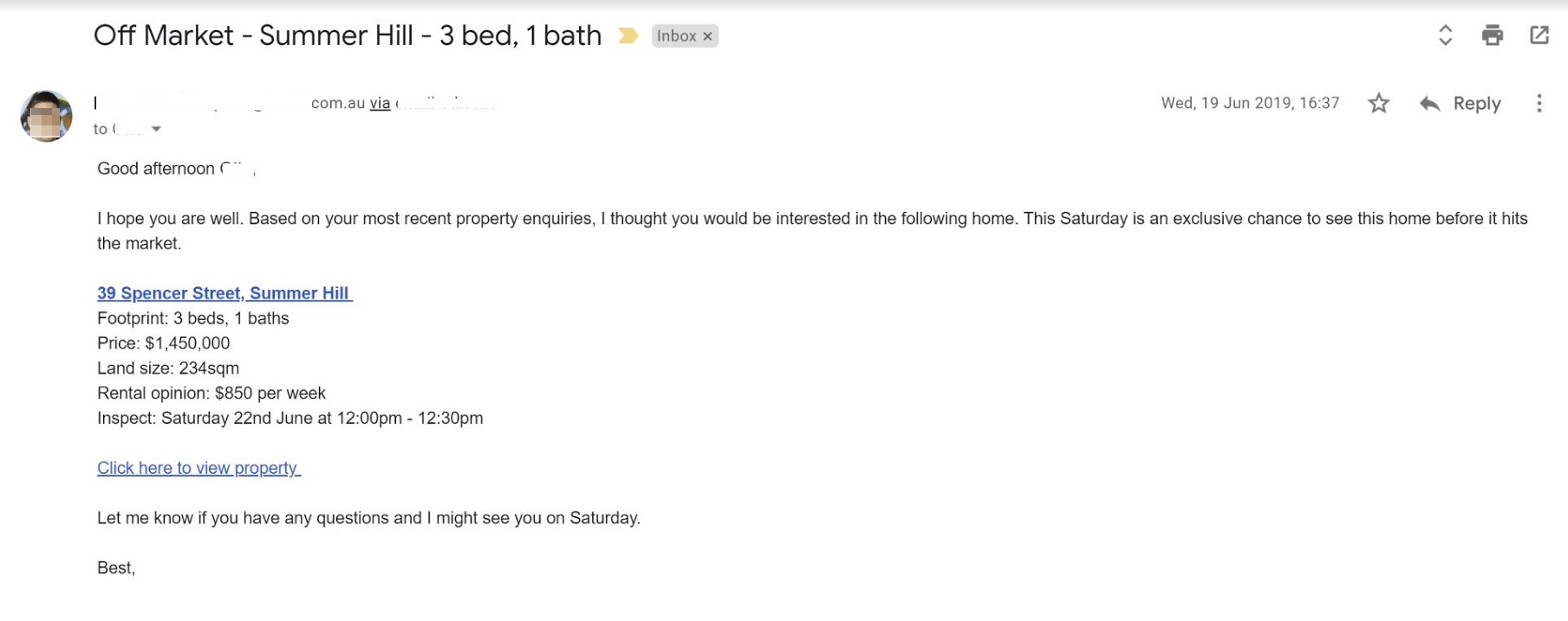 - Word of mouth: Ask your friends and family, your mortgage broker and even your solicitor if they know any off market opportunity. The next time that they come across one they’ll remember that you’re interested.